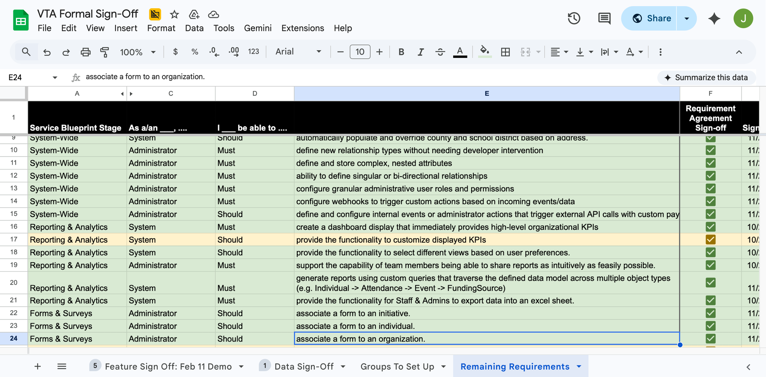 This included conducting requirements gathering and sign off workshops, ensuring the client always understood what outputs to expect and de-risking any decision making for key stakeholders via collective sign offs based on mutual agreement.